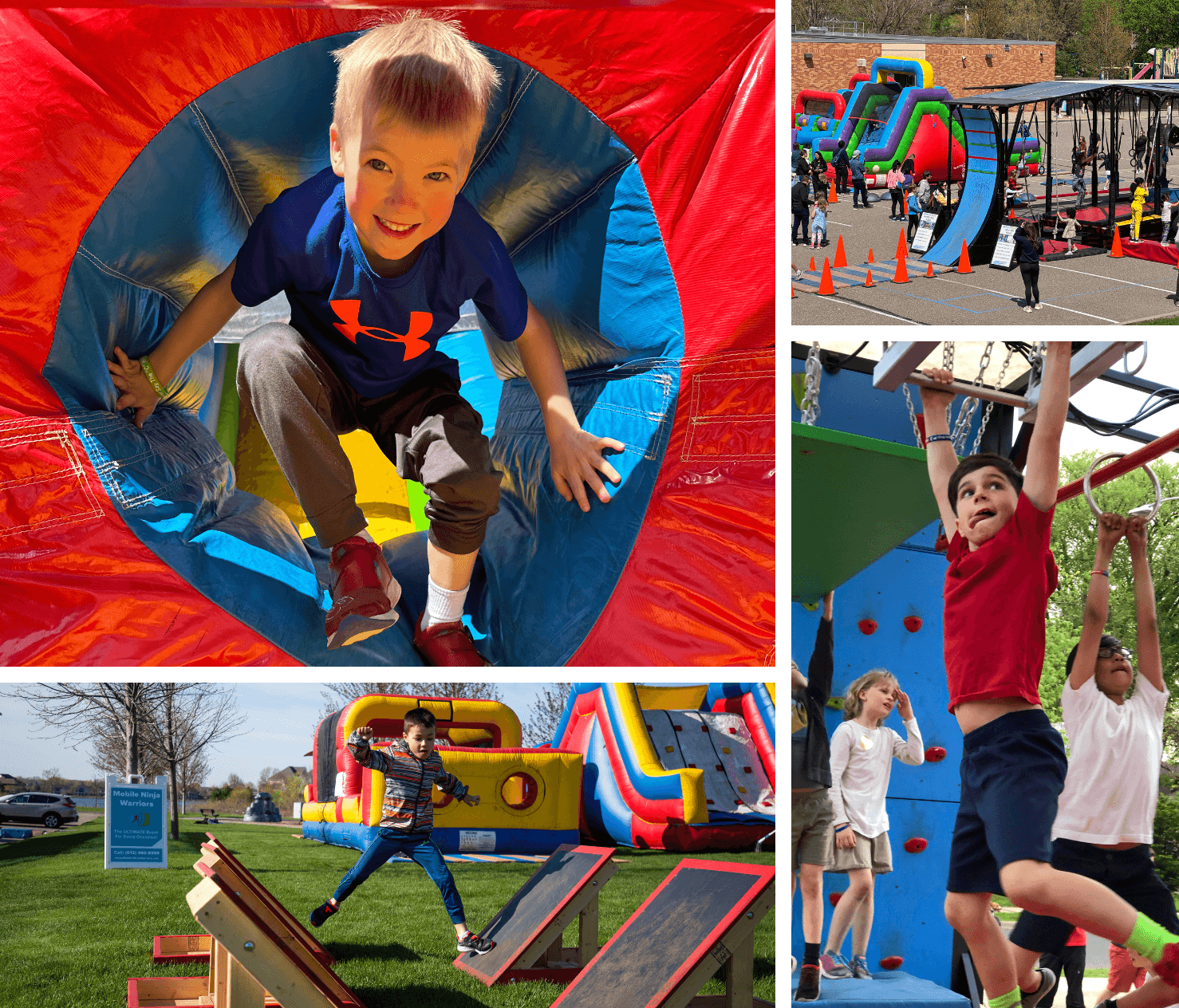 ✅ We bring a full ninja obstacle course to your school (ninja rig, inflatables, and balance obstacles)