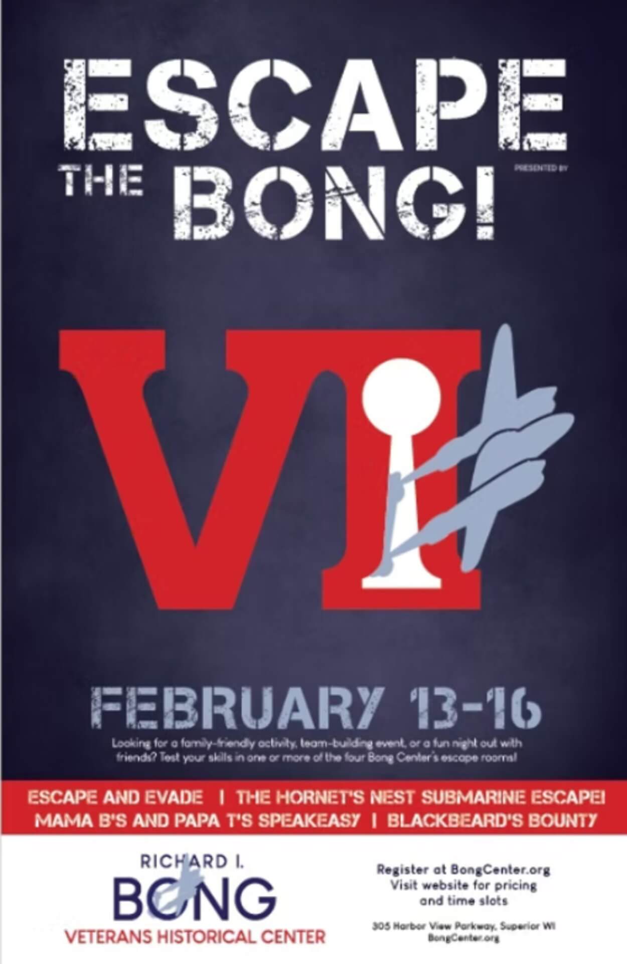 Looking for a family-friendly activity, team building event, or a fun night out with friends? Test your skills in one or more of the four Bong Center's escape rooms!