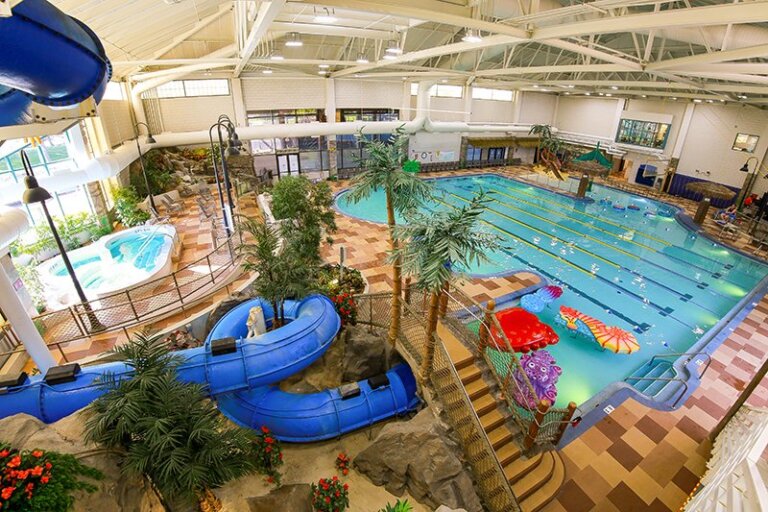 Bamboo Bay Our zero depth entry wading pool that features a large toddler area with a large play structure that has over 40 play features including a large 300-gallon dumping bucket, duel racing slides, a 32-inch body slide, water depth charges and more. Tropics Indoor Waterpark For older children, this waterpark features Shark Attack Waterslide where riders…